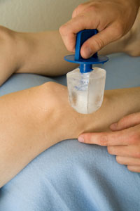 Unter Kryotherapie, siehe auch Eis-Therapie versteht man die Anwendung von Eis zu therapeutischen Zwecken. Durch verschiedenartige Anwendungsformen mit unterschiedlichen Einwirkzeiten sollen Selbstheilungsprozesse unterstützt werden. Anwendungsformen sind : Eisbeutel, Silikatkompressen (Kryopack), Eismassage, -abreibung, Eistauchbad, Ganzkörperkältetherapie.